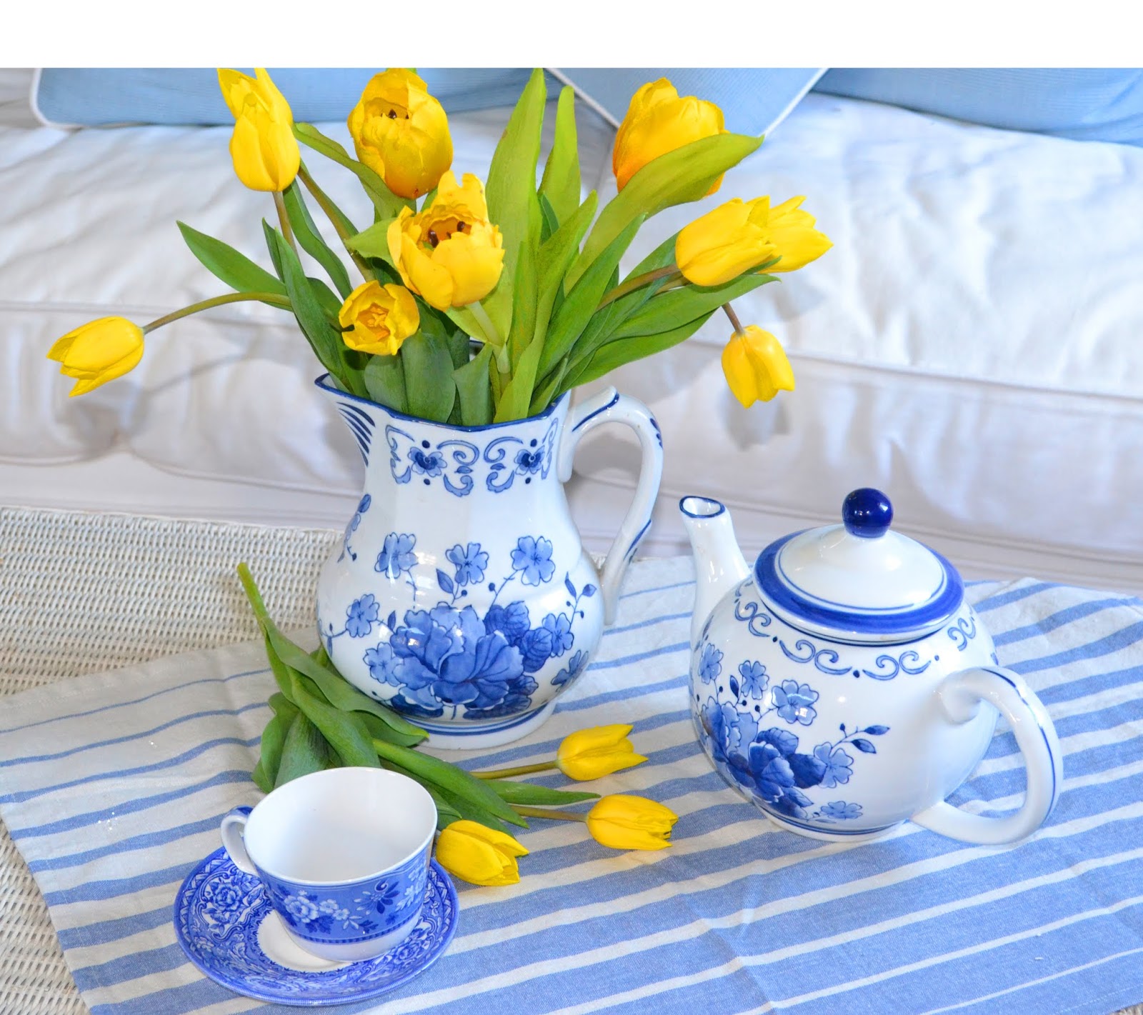 Directly past the entrance is the dining room. I collect blue and white china and you will see it throughout my home. It reminds me of my childhood summers spent at the family beach cottage at Wrightsville Beach, N.C - the charming cottage was filled with my Grandmother's mismatched blue and white china, old quilts, white wicker, and flowers - all the things that I love to paint.